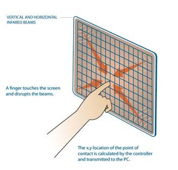 The new generation multi touch monitor screen of IR Touch Systems defines gesture commands implementation by applying any combination of two points, such as zooming in/out, rotating, dragging, especially for browsing and editing pictures. Multi-touch screen supports conventional single-touch event; and is fully compatible with the upcoming-release Windows 7 operation system of Microsoft, plug and play and driver-free, enabling unique and powerful user interface for a variety of applications.